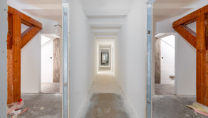 - na poschodí 13 rozostavaných apartmánov s vlastnou kupeľňou, pred dokončením., takisto aj kancelárske priestory.