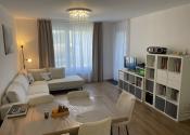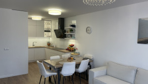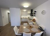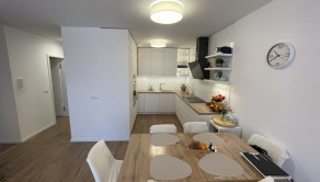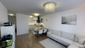DISPOZÍCIA: Dispozičné riešenie je funkčné, otvorený obývací priestor s jedálenským stolom a kuchynským kútom. Dve izby s loggiou. Manželská spálňa má samostatnú kúpeľňu čo zvyšuje komfort. Druká kúpeľňa a „hosťovské“ WC sú samostané. Denná časť je oddelené od nočnej.