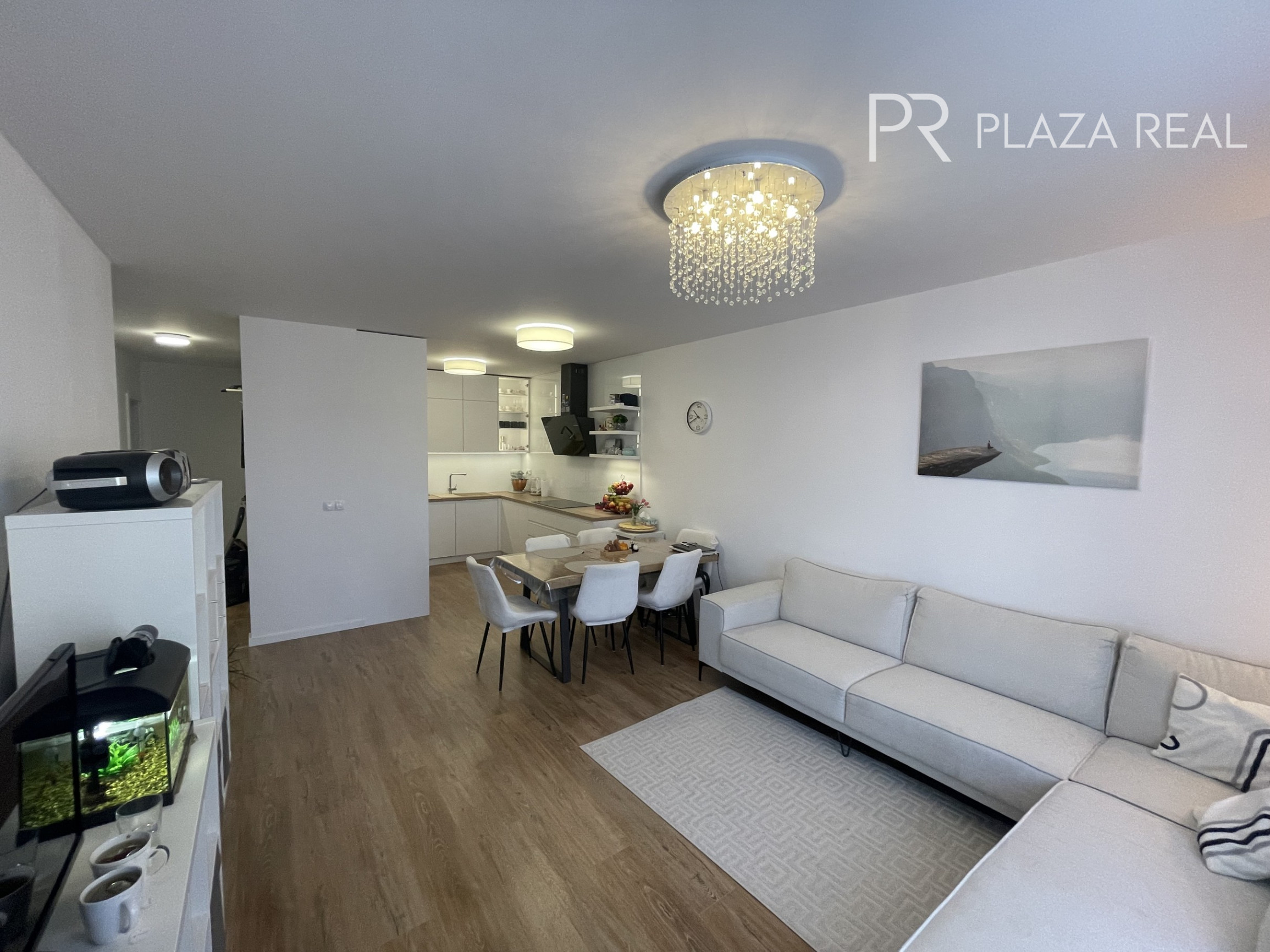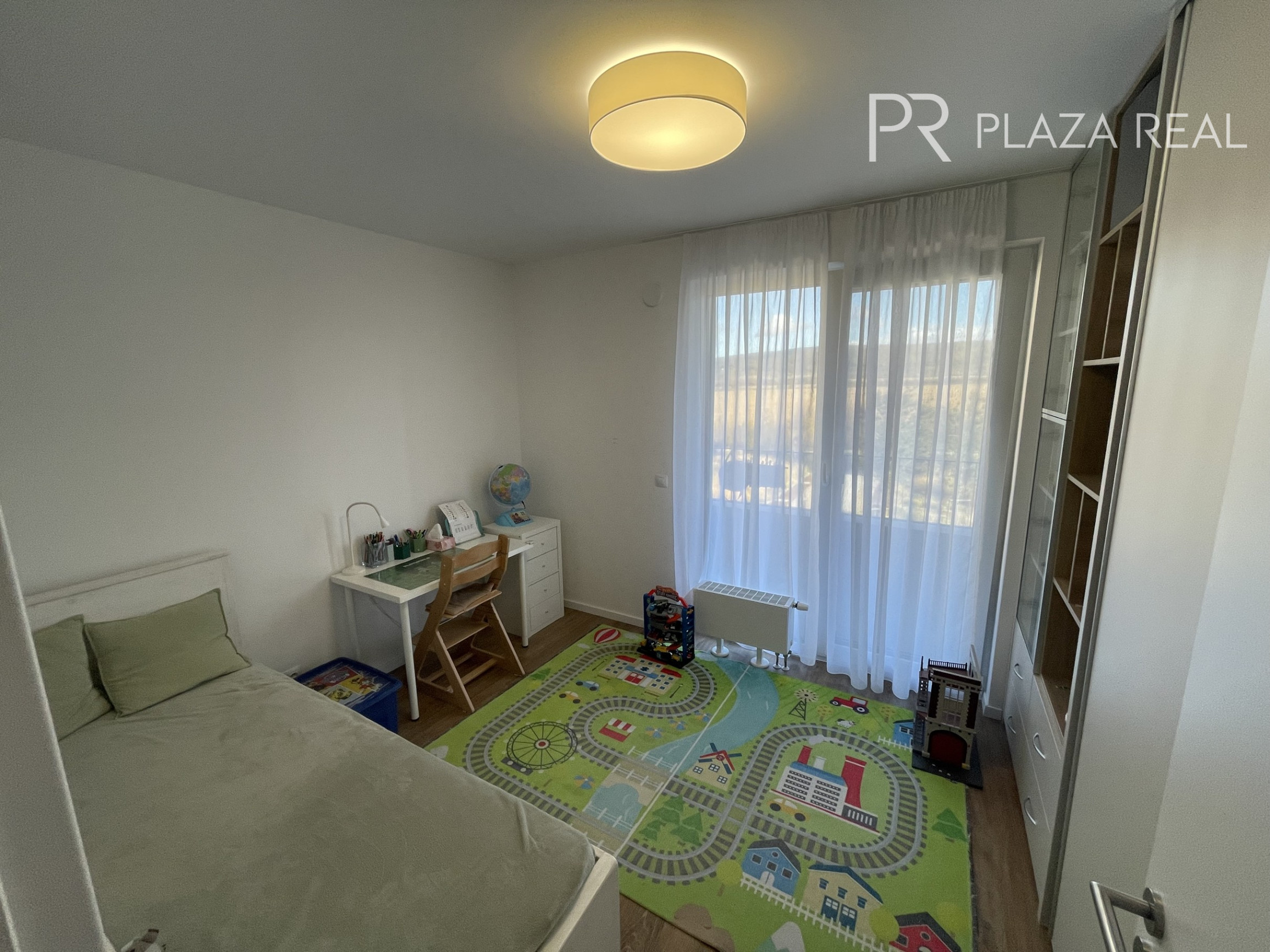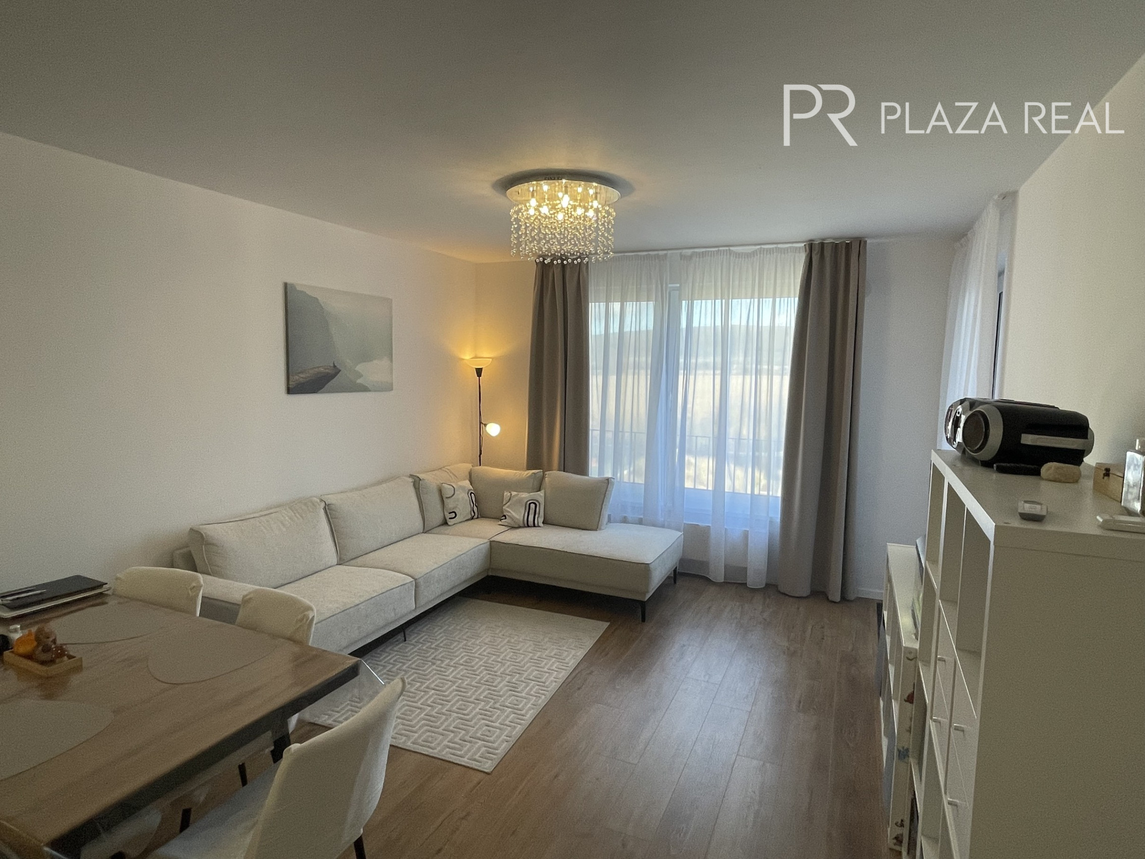 BYT: 4. izb. útulný, svetlý byt s úžitkovou plochou 90,5m2, sa nachádza na 3.poschodí z piatich s orientáciou na juhovýchod. K dispozícii je loggia o veľkorysej ploche 11,5 m2. Interiér bytu je vzdušný, účelný, ladený vo svetlých farbách. Na stenách sú biele stierky, rsp, keramický obklad v kúpeľni a samostatnom WC. Nášľapnú vrstvu v byte tvorí plávajúca laminátová podlaha. Hliníkové okná majú vonkajšie elektrické žalúzie, obytné miestnosti sú prepojené s exteriérom mikroventiláciou cez obvodovú stenu.