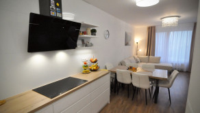 ZARIADENIE: Byt je kompletne vybavený vstavanými skriňami, kuchynskou linkou na mieru, niektoré kúsky nábytku je možné odkúpiť po dohode.. Nová práčka a suška AEG v cene 1400.-Eur už v cene bytu.