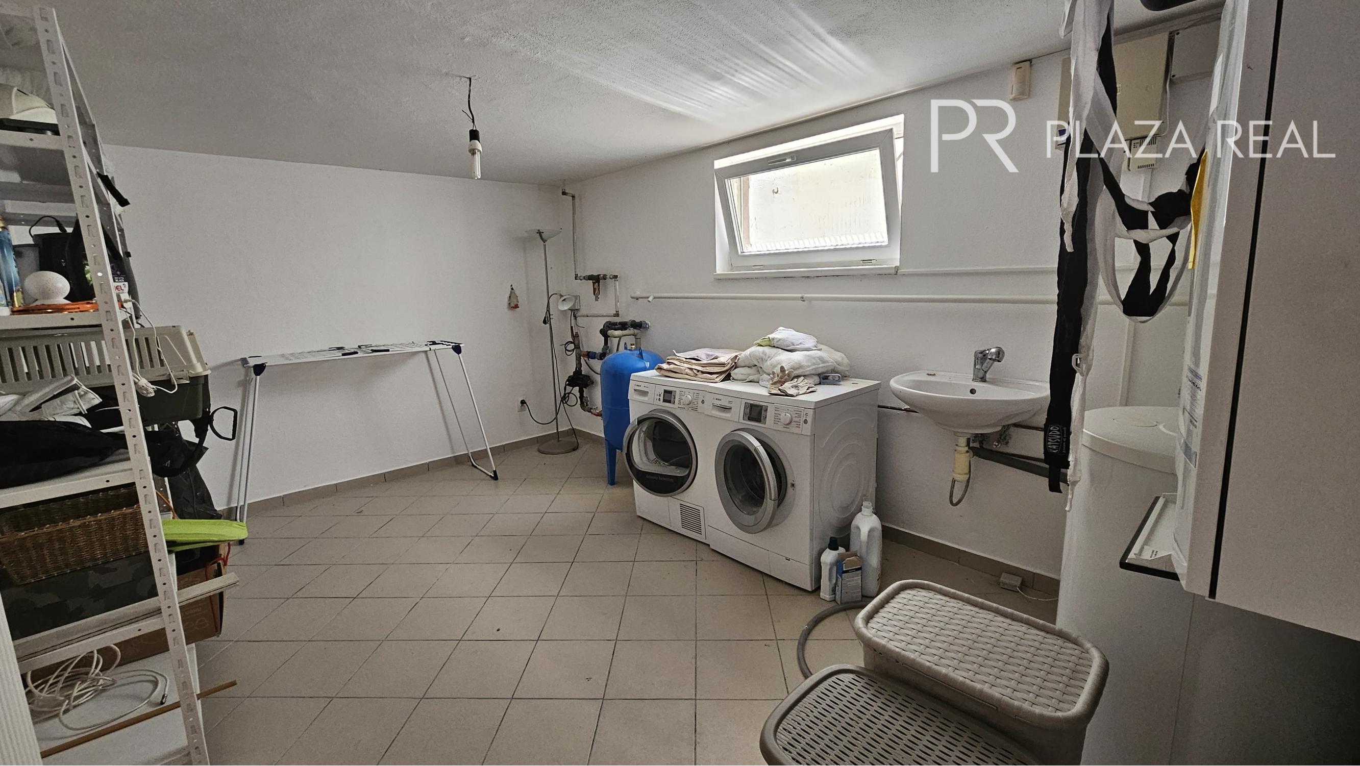 V suteréne je umiestnená technická miestnosť, sklad, schodisko a chodba. Na prízemí popri vstupnom priestore, zádveria, schodiska sa nachádza obývacia izba, kuchyňa, špajza, kancelária, kúpelňa s WC, garáž a terasa.