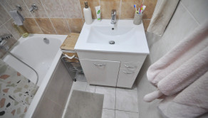 BYT: 3. izb. útulný, svetlý byt s úžitkovou plochou 67,5m2, sa nachádza na 3.poschodí z troch s orientáciou na juhovýchod. K dispozícii je loggia o veľkorysej ploche 7,5 m2. Interiér bytu je vzdušný, účelný, ladený v moderných farbách. Na stenách sú biele stierky, rsp, keramický obklad v kúpeľni a samostatnom WC. Nášľapnú vrstvu v byte tvorí plávajúca laminátová podlaha, rsp. keramická dlažba v predsieni, kúpeľni a WC. Plastové okná majú vnútorné žalúzie. ( V izbách ). V byte bola z rekonštrukciou vymenená elektroinštalácia, v detskej izbe/pracovni a v obývacej izbe je zrealizovaná dátová sieť.