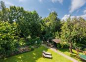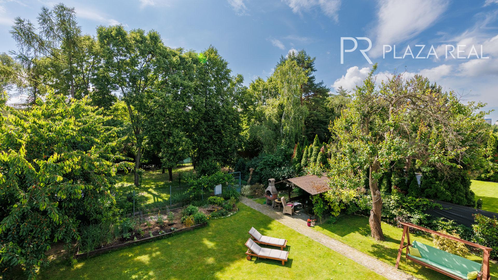 slnečný, priestranný rovinatý pozemok s krásnou záhradou, s altánkom a bazénom
