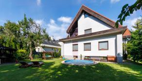 Rodinný dom s dvoma samostatnými bytovými jednotkami a veľkým pozemkom sa nachádza v tichej časti Vrakune v tesnej blízkosti lesoparku a s dobrou dostupnosťou na bratislavský obchvat. Dom je ideálny na rodinné bývanie pre dve rodiny ale aj pre podnikateľské účely. Je podpivničený, trojpodlažný. Je situovaný v príjemnej tichej ulici s veľmi dobrými susedskými vzťahmi. Súčasťou domu s priestranným pozemkom a záhradou ( 802m2) + oplotený pozemok v dlhodobom užívaní (366m2) je aj veľká dvojgaráž s montážnou jamou, murovaný bazén, studňa na pozemku, vonkajší altánok s murovaným krbom. Pôvodný dom ( suterén, prízemie) bol skolaudovaný v roku 1972 a neskôr v r.2002 bol nadstavovaný o ďalšie poschodie s povalou so samostatným vstupom. Zároveň dom prešiel celkovou rekonštrukciou ( nová strecha, zateplenie celého domu, vstupné vchodové priestory, garáž, nové drevené okná, rekonštrukcie izieb, kuchyne, kúpeľne, WC na prízemí).