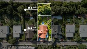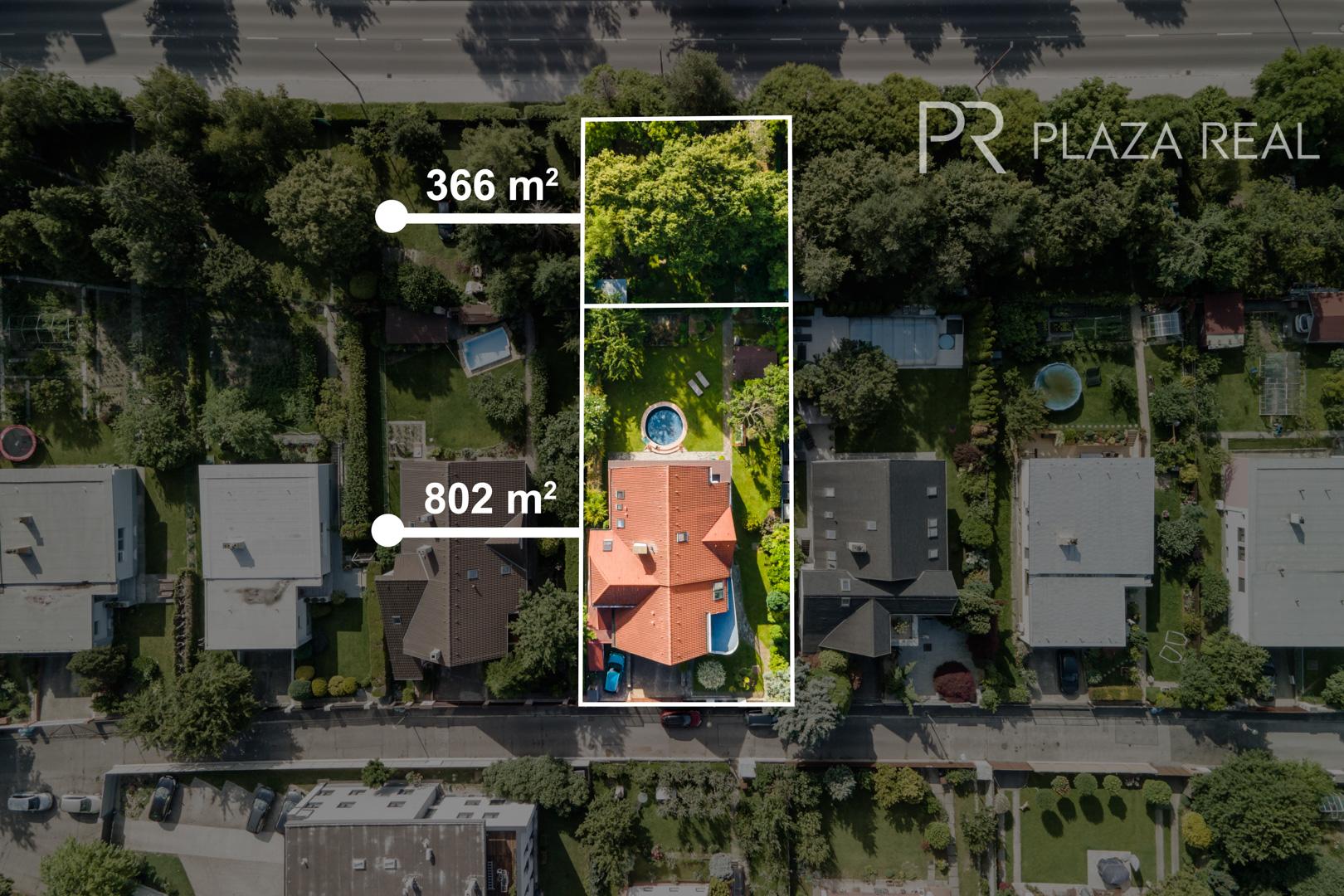 veľkosť pozemku so záhradou je 802 m2, vonkajší pozemok v dlhodobom užívaní 366 m2